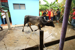 | Anak-anak muda kampung berkerjasama menjayakan ibadah korban. |